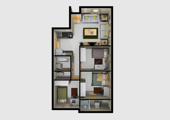 New 2-bedroom property in New Modder, Benoni with separate bathroom, open plan living area, WiFi ready, security village. Close to amenities.