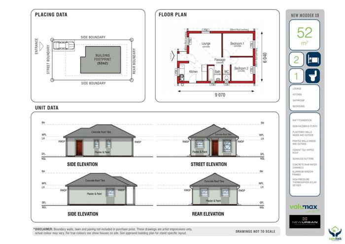 New 2BR home with open living/kitchen, solar geyser, close to malls and highways, includes transfer duty and conveyancer fees.