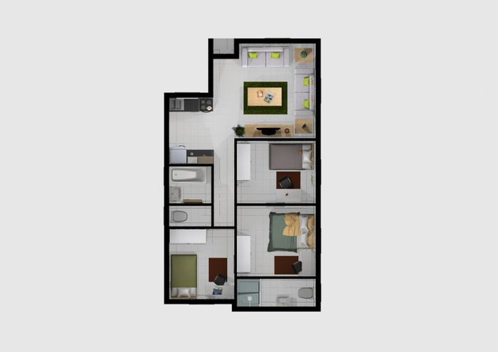 A 3 bedroom home with 1 bathroom, an open plan living area and kitchen, ideally located with easy access to N12, malls, and schools.