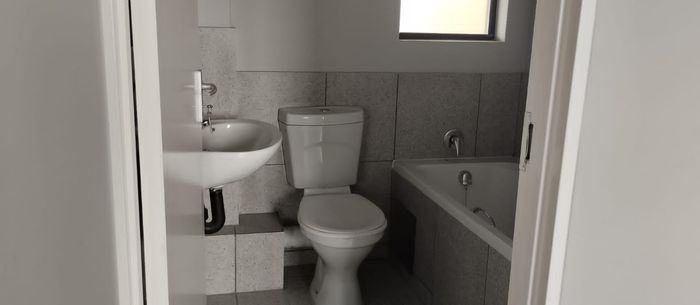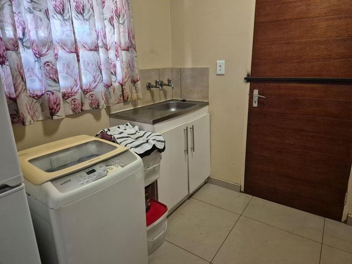 Ground floor modern apartment with 2 bedrooms, tiled bathroom, kitchen with granite tops, solar geysers, carport, and communal facilities.