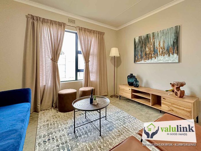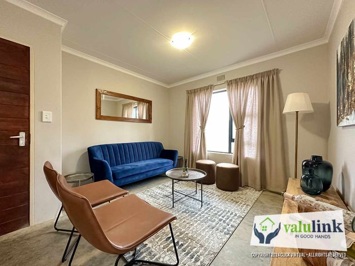 Property for sale in secure village, 2 bedrooms, open plan living area, close to schools, shopping centers, and transportation routes.