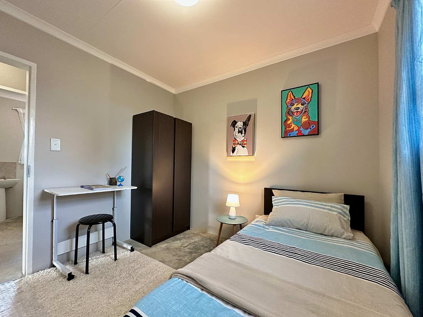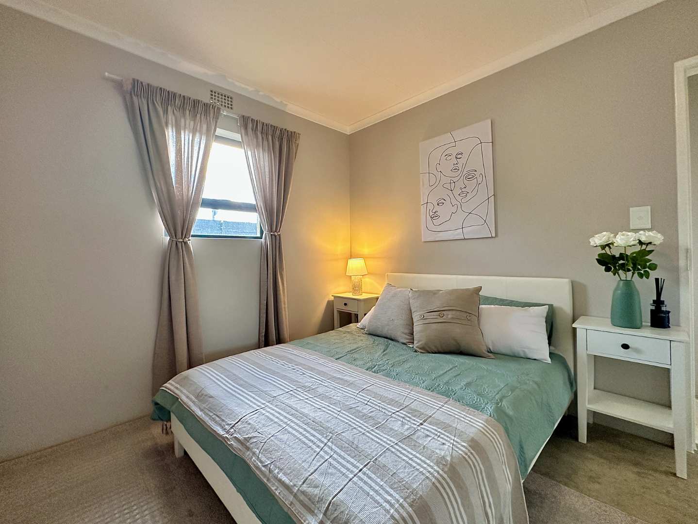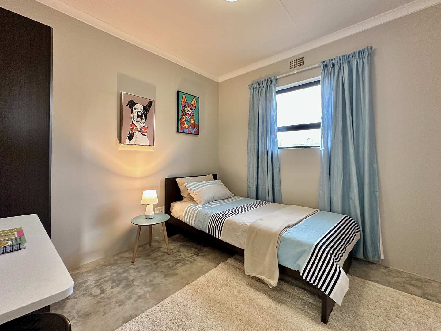 Open plan living area onto a kitchen with a sink cupboard, 4 plate Defy free standing stove/oven. Solar geyser , wifi ready.