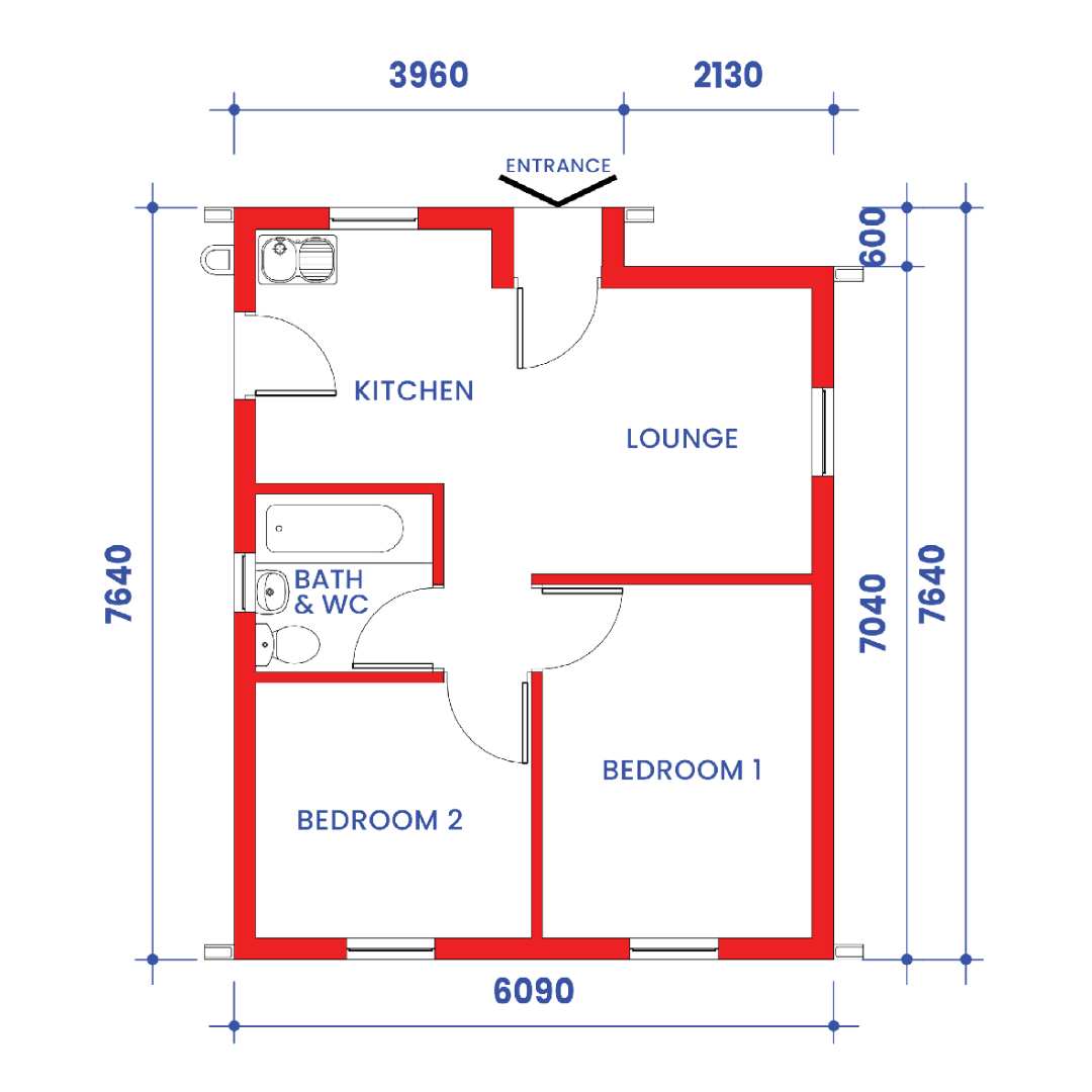 Offering 2 bedrooms and a separate bathroom with a bath and basin and toilet.