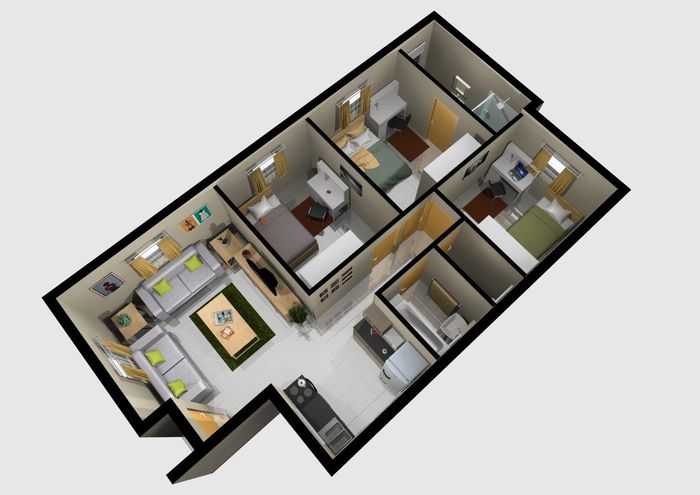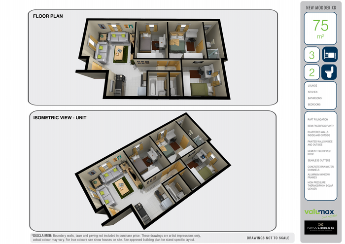 New 2-bedroom home in New Modder, featuring open-plan living, close to schools, malls, and taxi routes. Ideal first home.