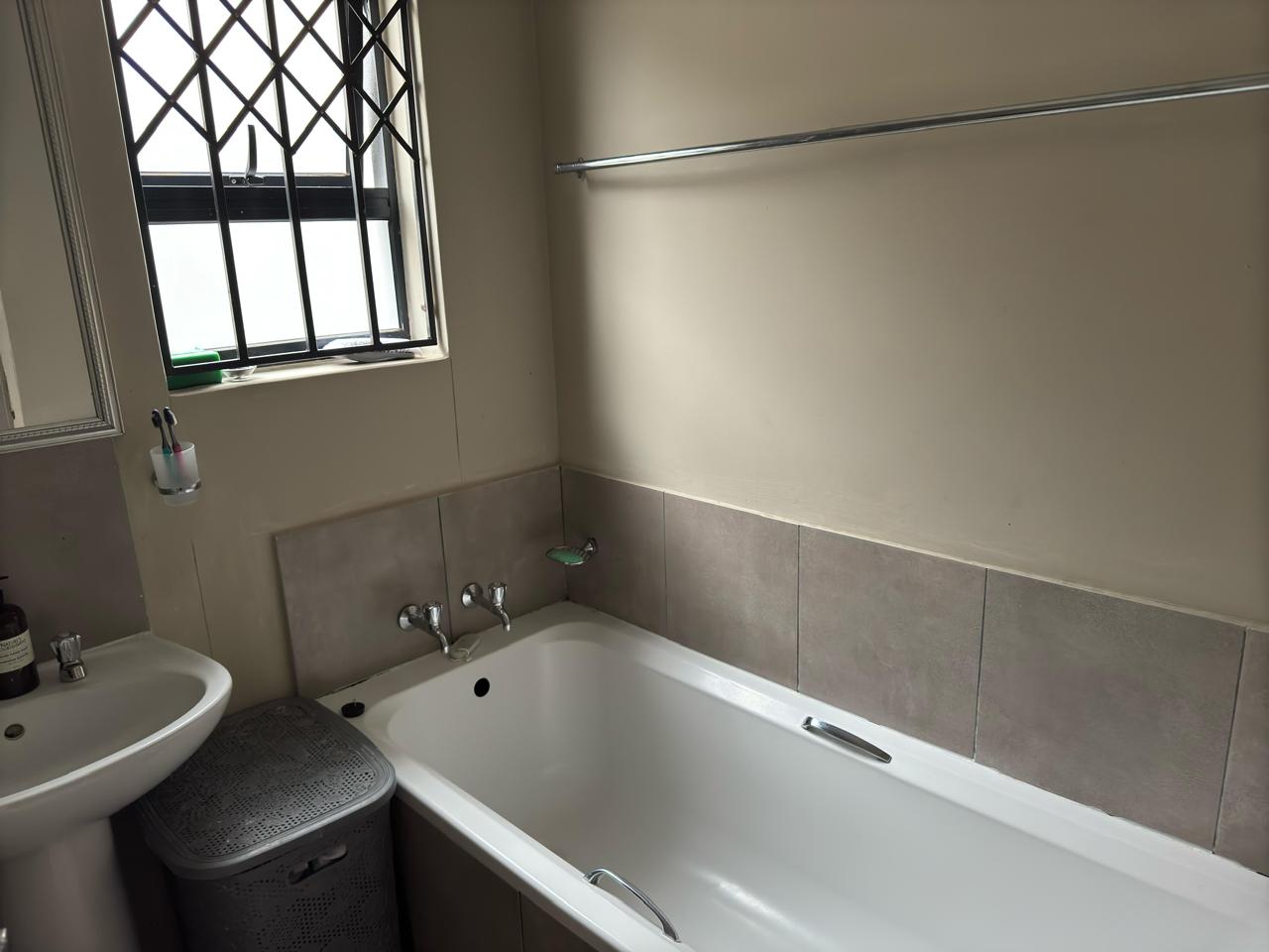 Separate tiled bathroom with a bath & basin. Separate toilet.