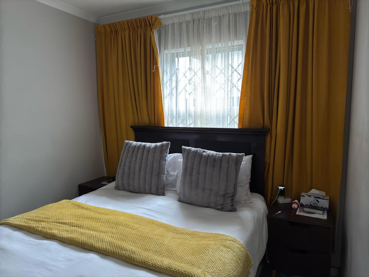 Burglar bars, security gates and paving. Property is walled and gated