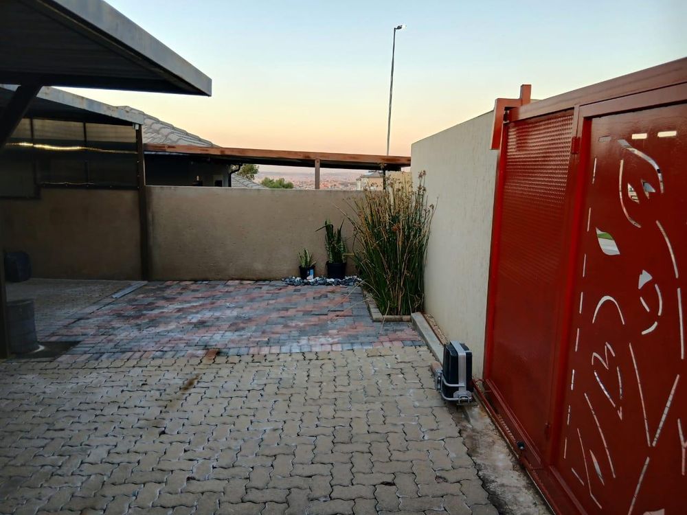 Outside toilet and cupboard, burglar bars throughout. Double carports , property has paving and is walled and gated