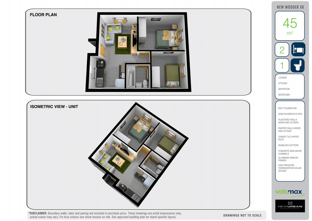 Brand New property for sale in New Modder with 2 BEDROOMS . 1 Bathroom with bath , basin and toilet.