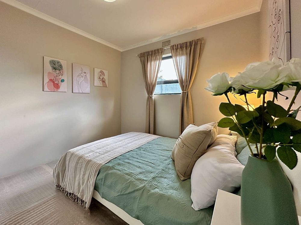 Open plan living area onto a kitchen with a sink cupboard, 4 plate Defy free standing stove/oven. Solar geyser , wifi ready.