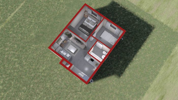 3-bedroom house in Riverside View with open plan living area, kitchen, separate bathroom, grassed area, paving, and walled property.