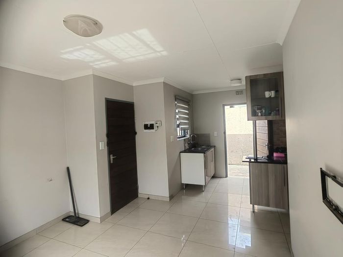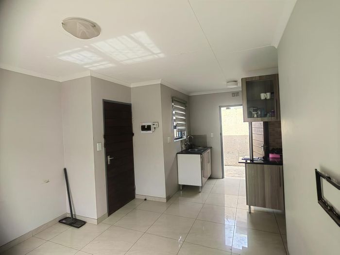 Two-bedroom property in Clayville with modern kitchen, tiled living area, separate bathroom and toilet, walled, gated, and secure.