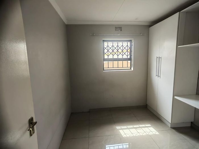 Three-bedroom property in Clayville with open-plan living, separate bathroom, and security features.