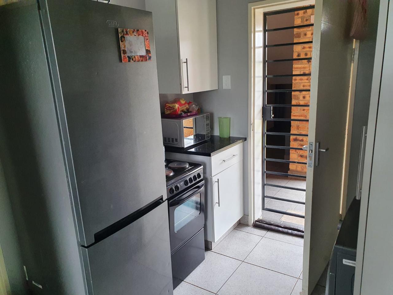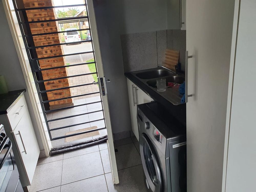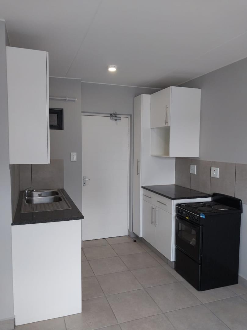 4 plate stove & oven and a water connection for a washing machine. 1 covered carport. Prepaid electricity and the apartment is WI-FI ready. Security gates on an external door.