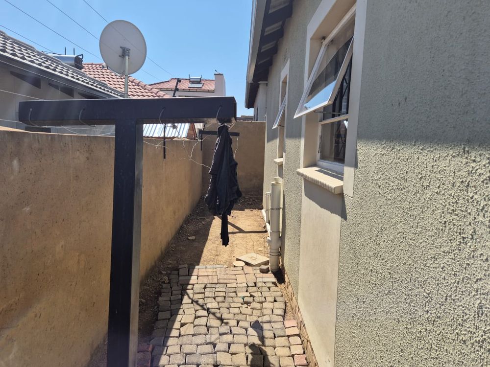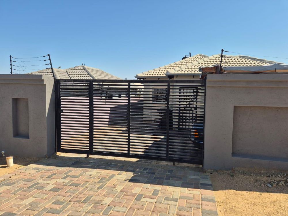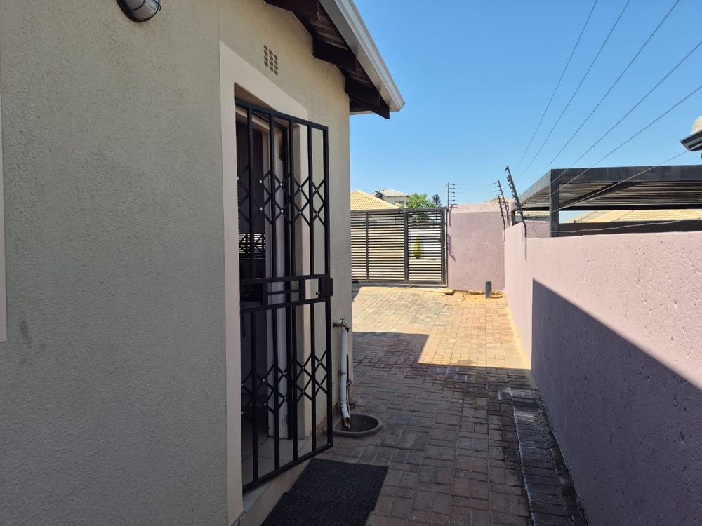 Property has security gates and burglar bars . Outside paving and property is walled and gated .